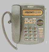 この前電気屋で見つけたんだけどソニーのこの電話デザインがかっこいいなあ、でもFAXは仕事柄必要だし…機能はというとすべて英語表記で自作着メロ(これはいらん)相手を音声で知らせてくれる「名のってる」機能搭載だって。普通 の電気屋でうってるから一度見てくれ。