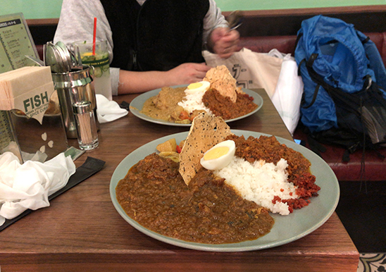 イノシシとりんごのカレーと牡蠣のカレーの2種盛り、2回食べた。