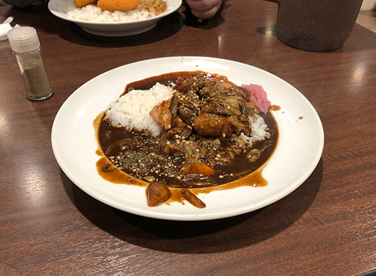 テオブロマのカフェでカレーがあった。隠し味のチョコ入れ忘れて最後に添えたみたいになってる。