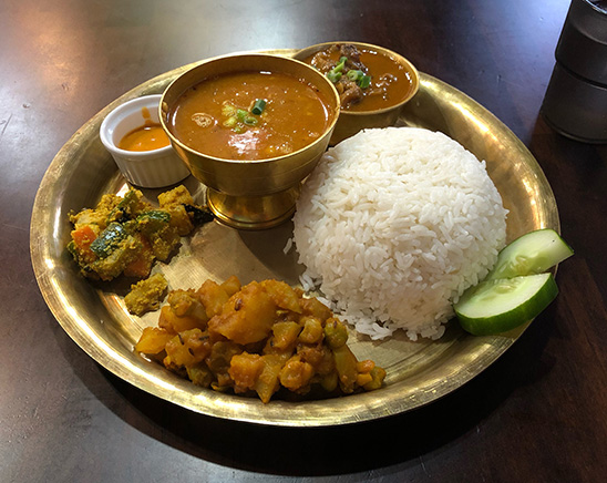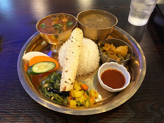 大久保のガウレレストラン&セクワガルでポークのダルバート ポークにしてみたら美味しかった。メニューには書いてないけど噂では全ておかわりできるっぽいのでもう1周してもよい(できるか!)1皿でお腹パンパン650円安っ!