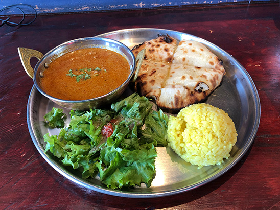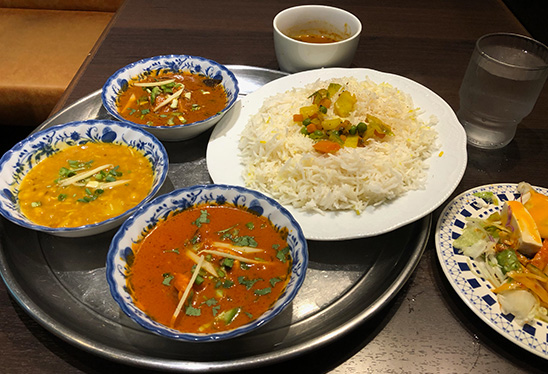 渋谷のエリックサウスマサラダイナーで南インドランチミールス 選べる1種はゴア風ポークビンダル、ウールガイも駆使しバスマティライスをおかわりしてフィニッシュ。仕事場の近所なんで年始から営業してるのありがたい