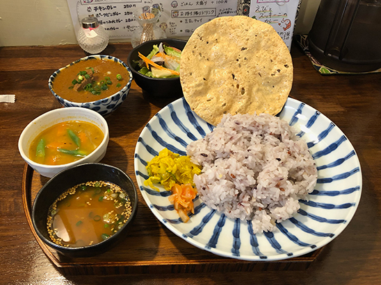 閉店ギリギリだったので鯛カレーはなかった、ポークヴィンダルーと野菜のおまかせプレート。4/13は1周年記念で7種のカレープレートやるみたいです